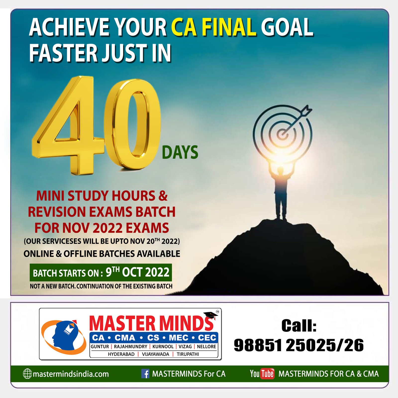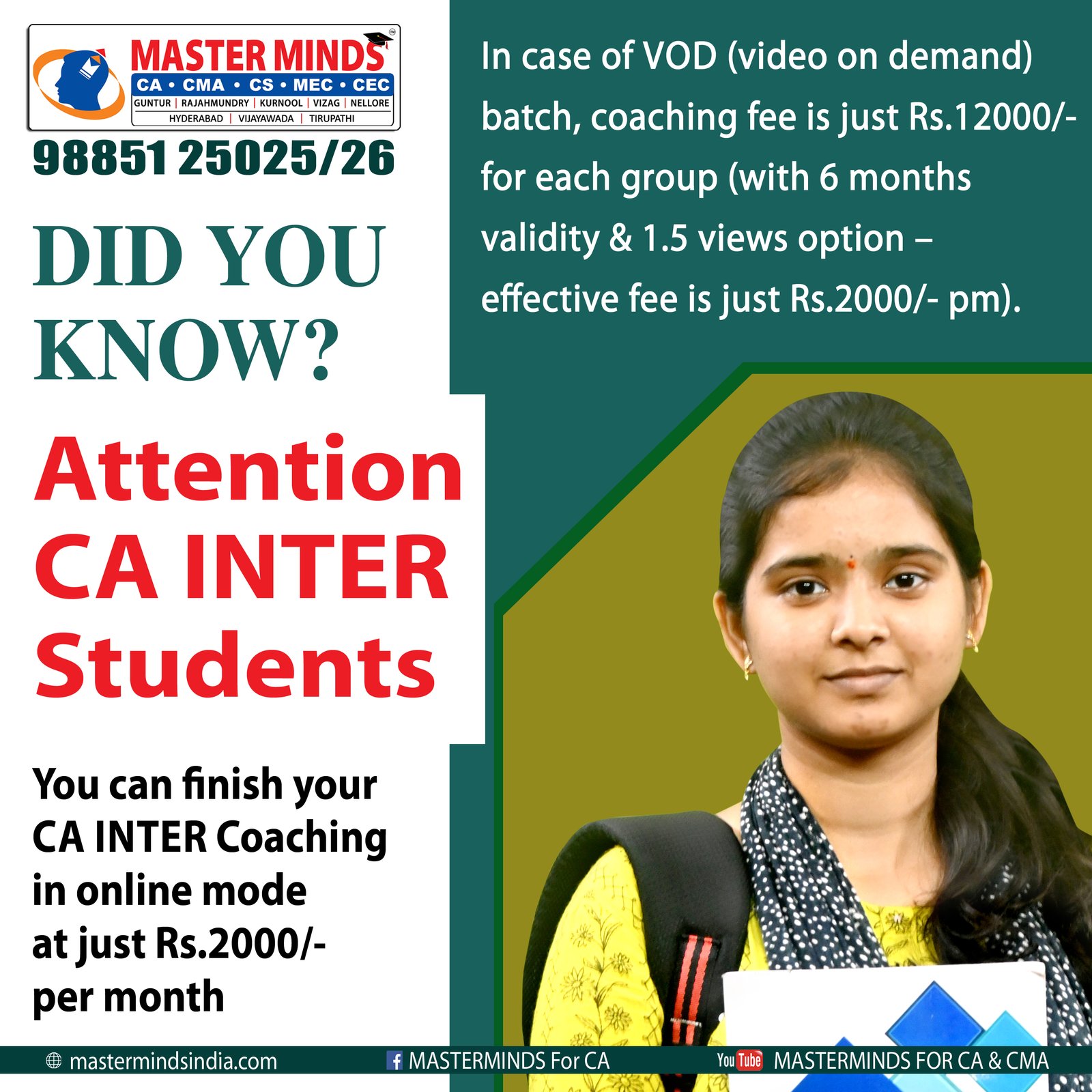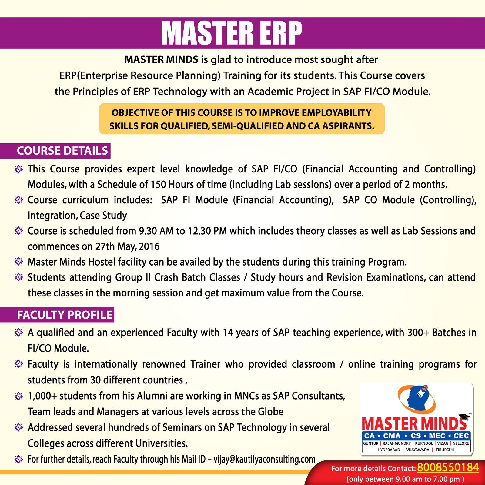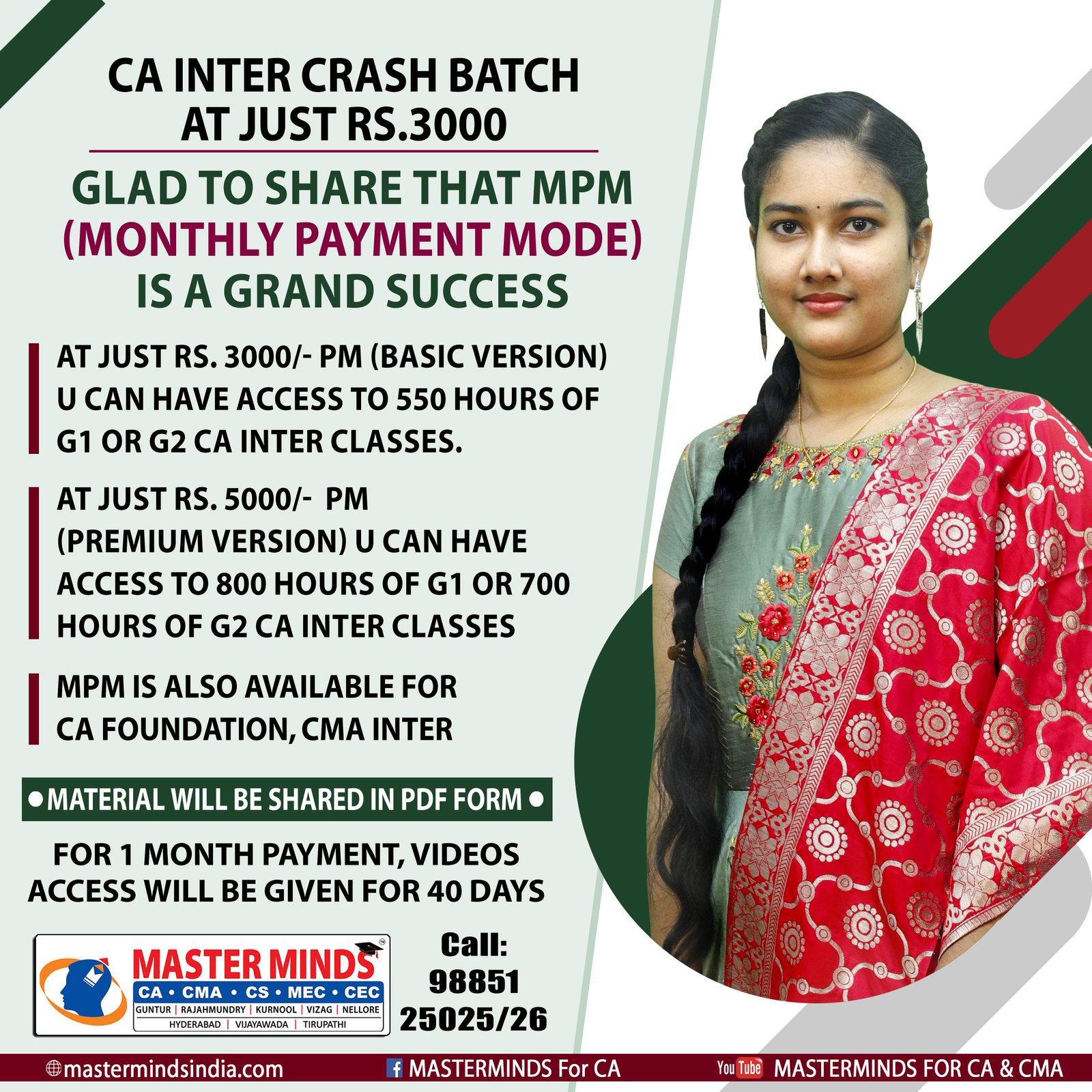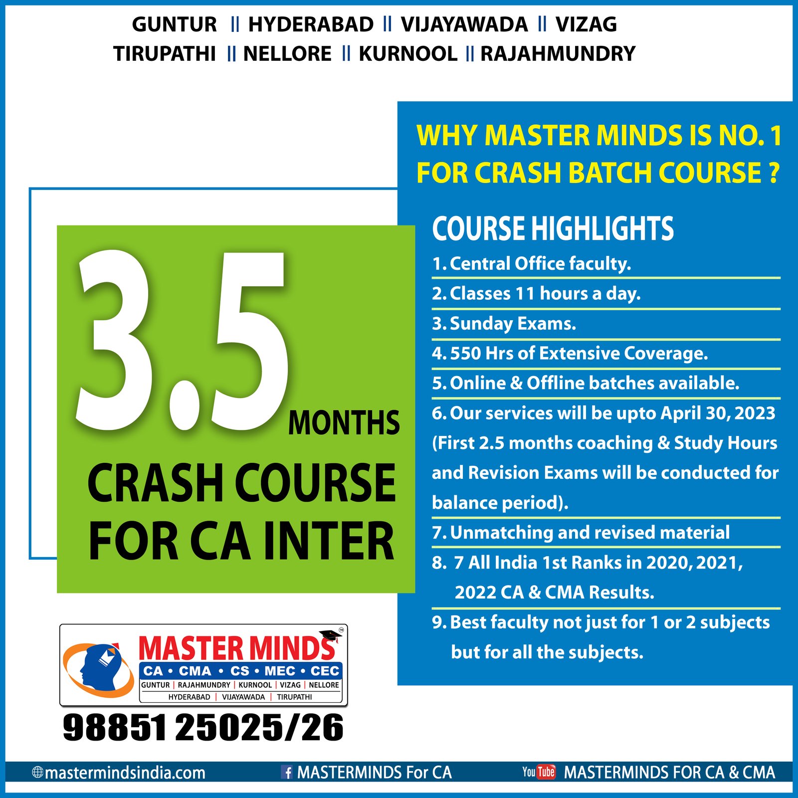 Next IPCC batch will commence from dec 27th at Guntur and from Jan 22nd at Kurnool. Details 92487 33315 / 13 |