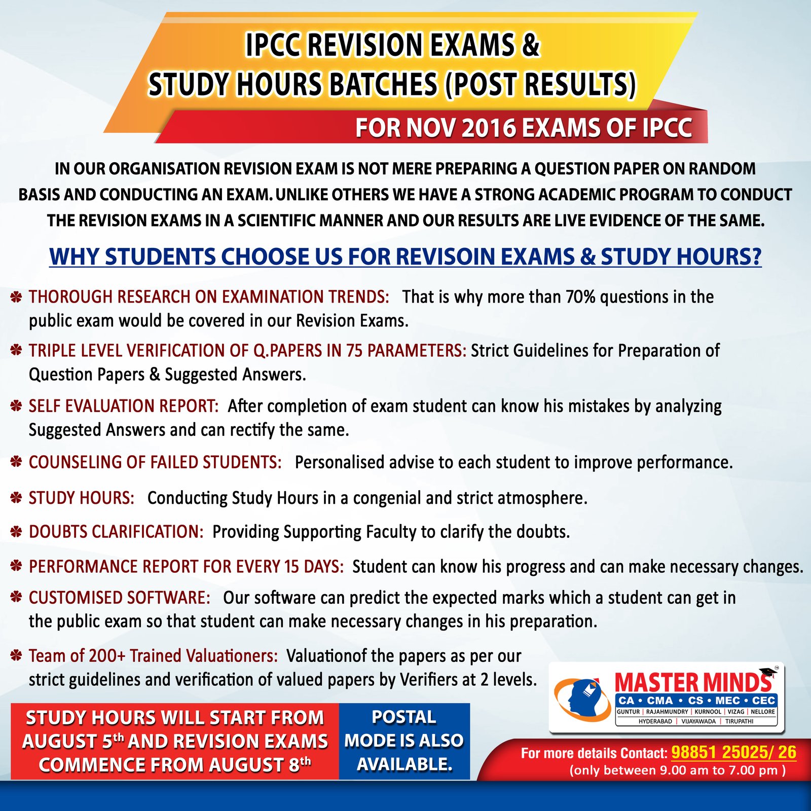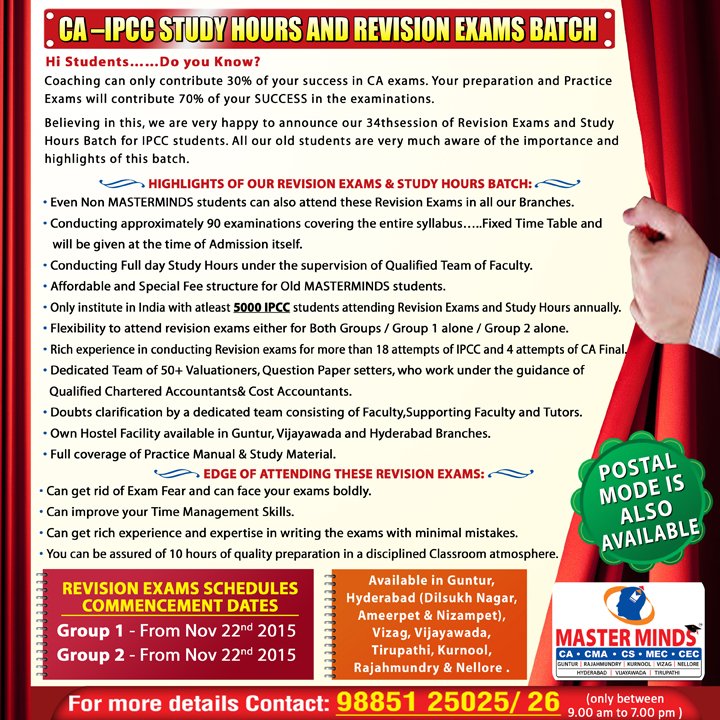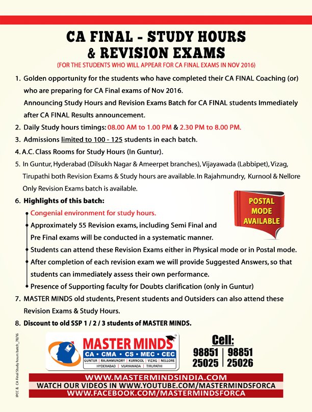 IPCC Study hours and Revision exams batch FOR NOV 2016 ATTEMPT 2 |