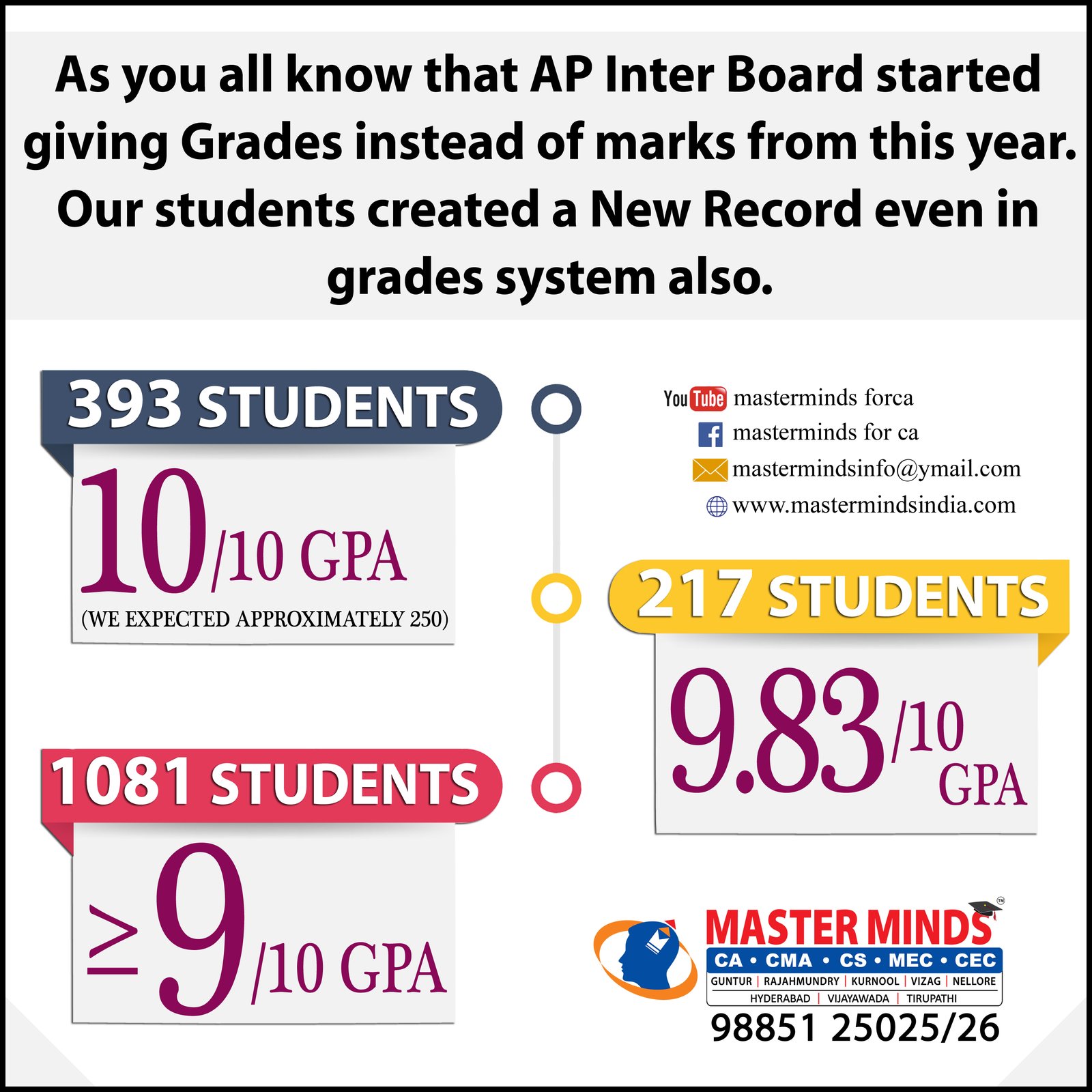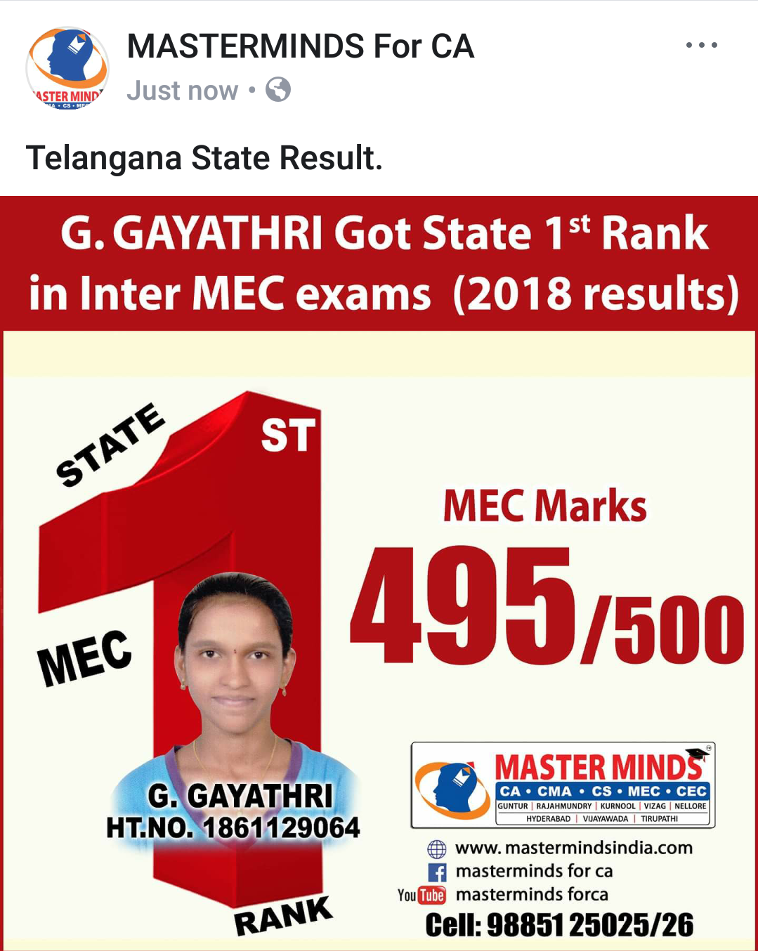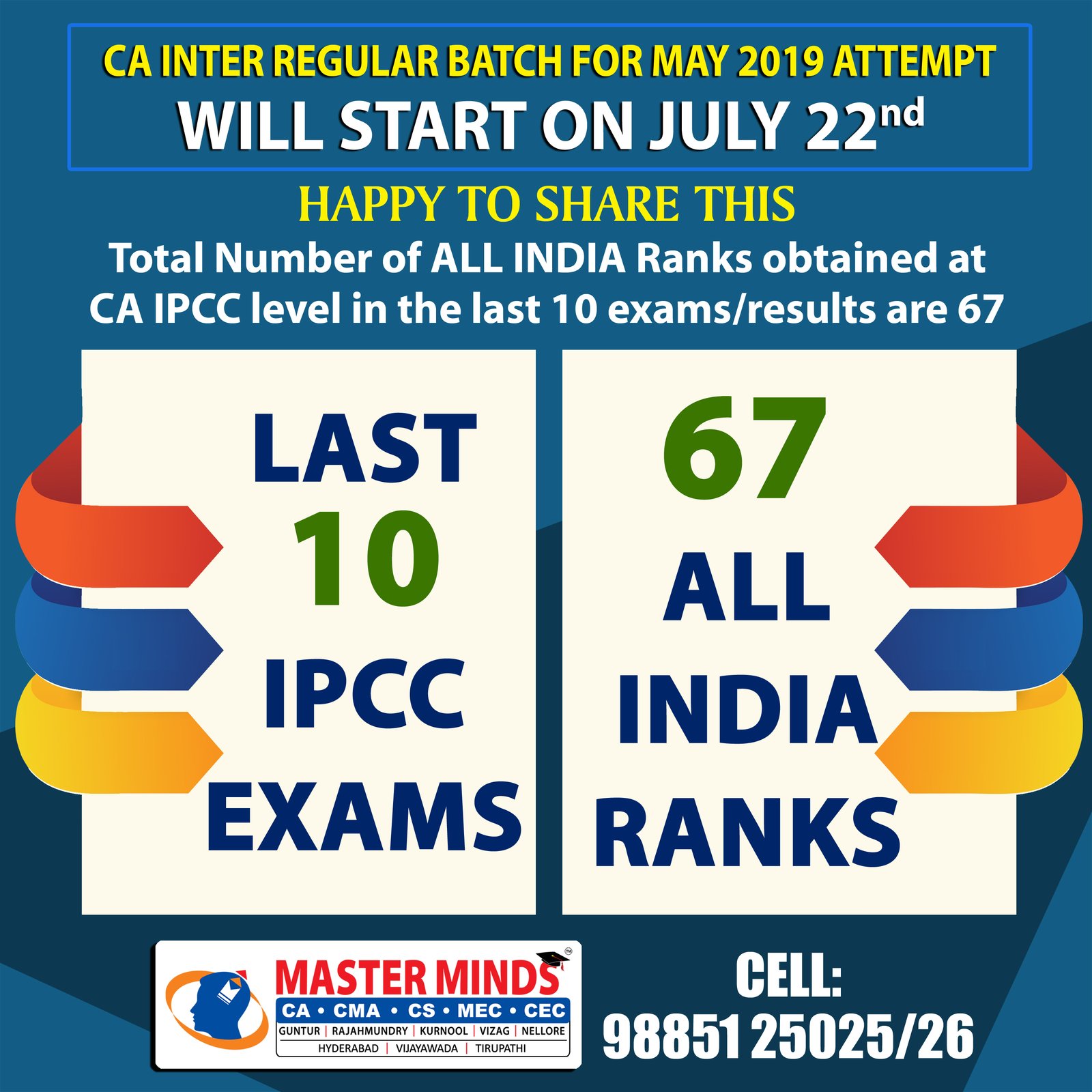 CA CPT ADMISSIONS ARE GOING ON. CROSSED 2000 ADMISSIONS. SPECIAL BATCH FOR MPC STUDENTS. MPC STUDENT GOT ALL INDIA 1ST. DETAILS CALL 9885125026. |