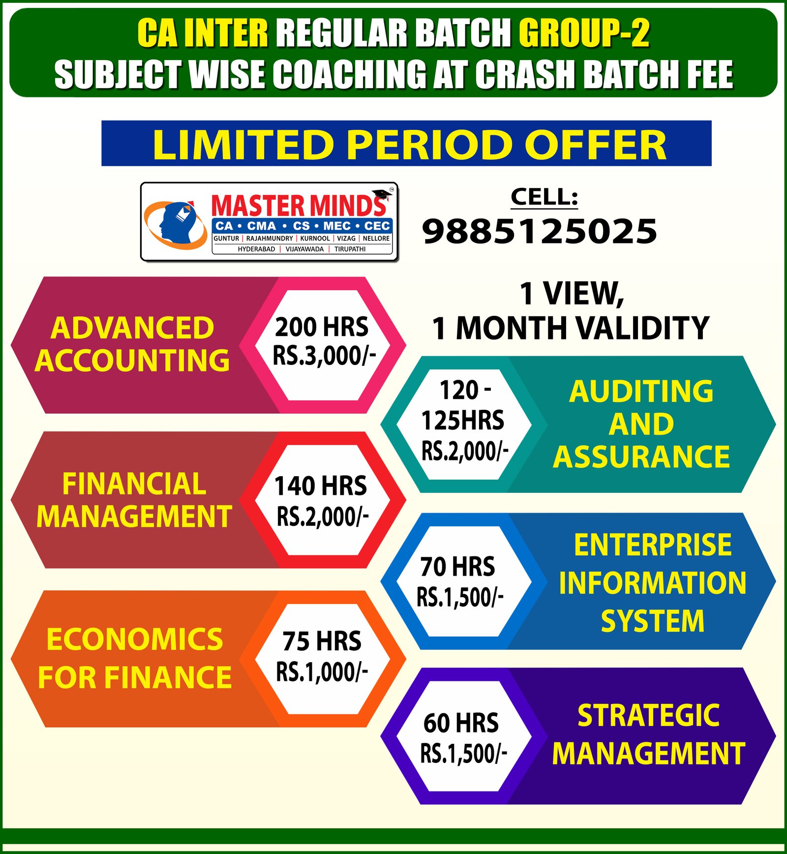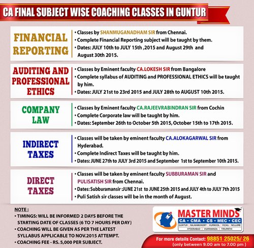 CA Final subject wise coaching classes in Guntur 01 |