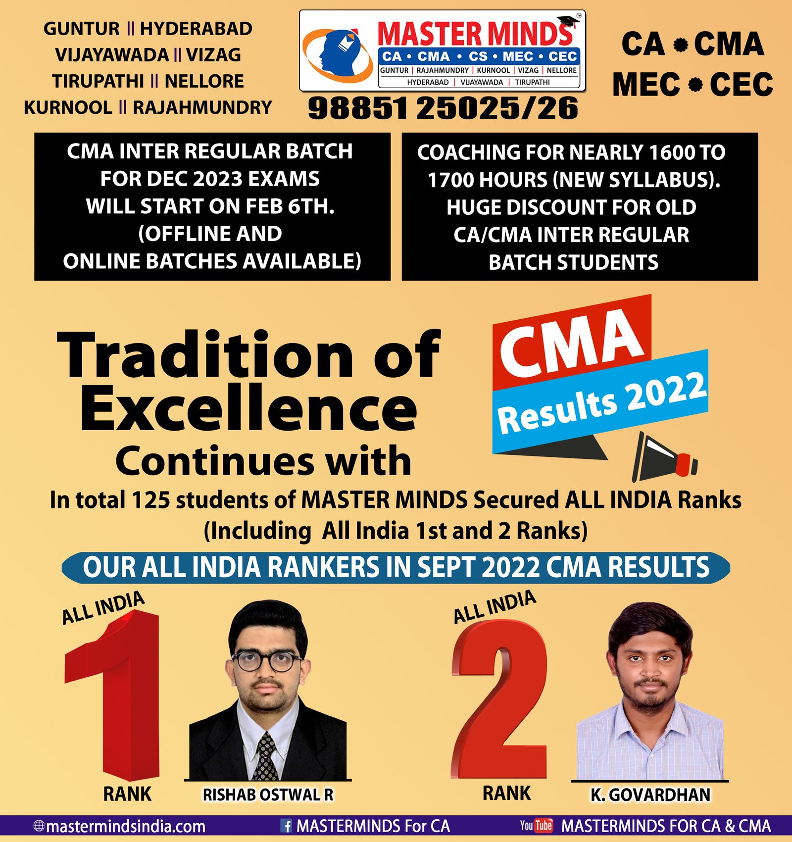CMA Results SEPT 2022 Students of Master Minds |