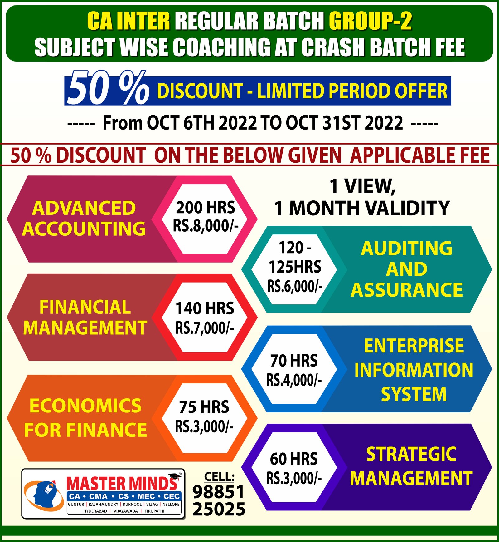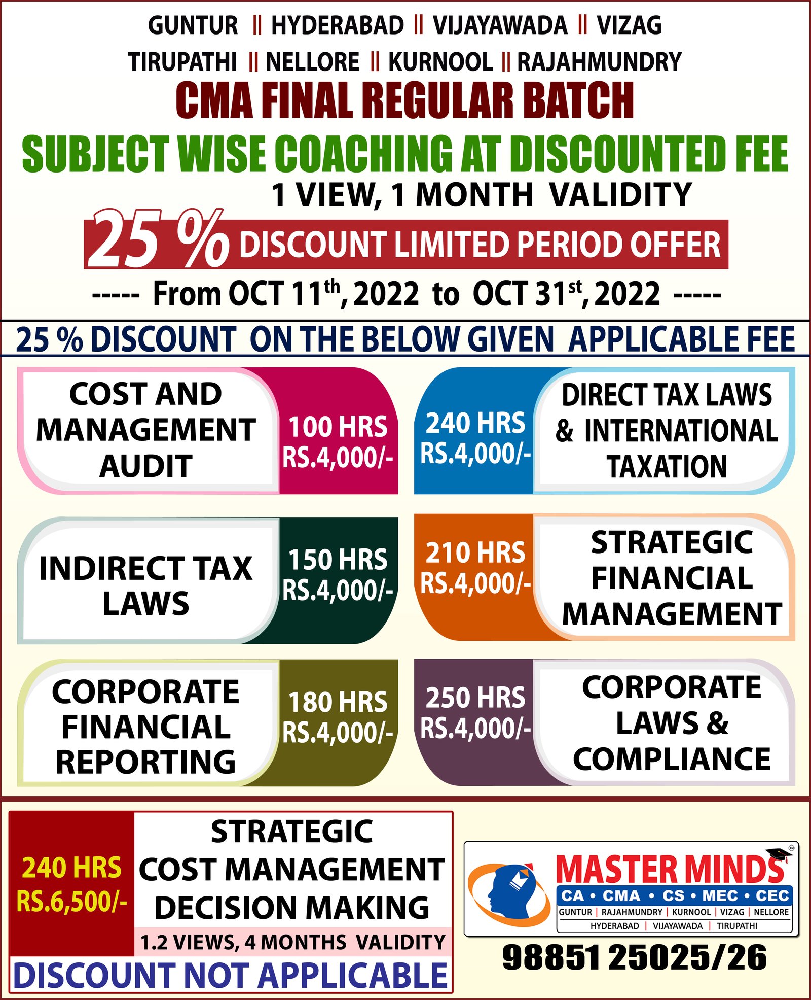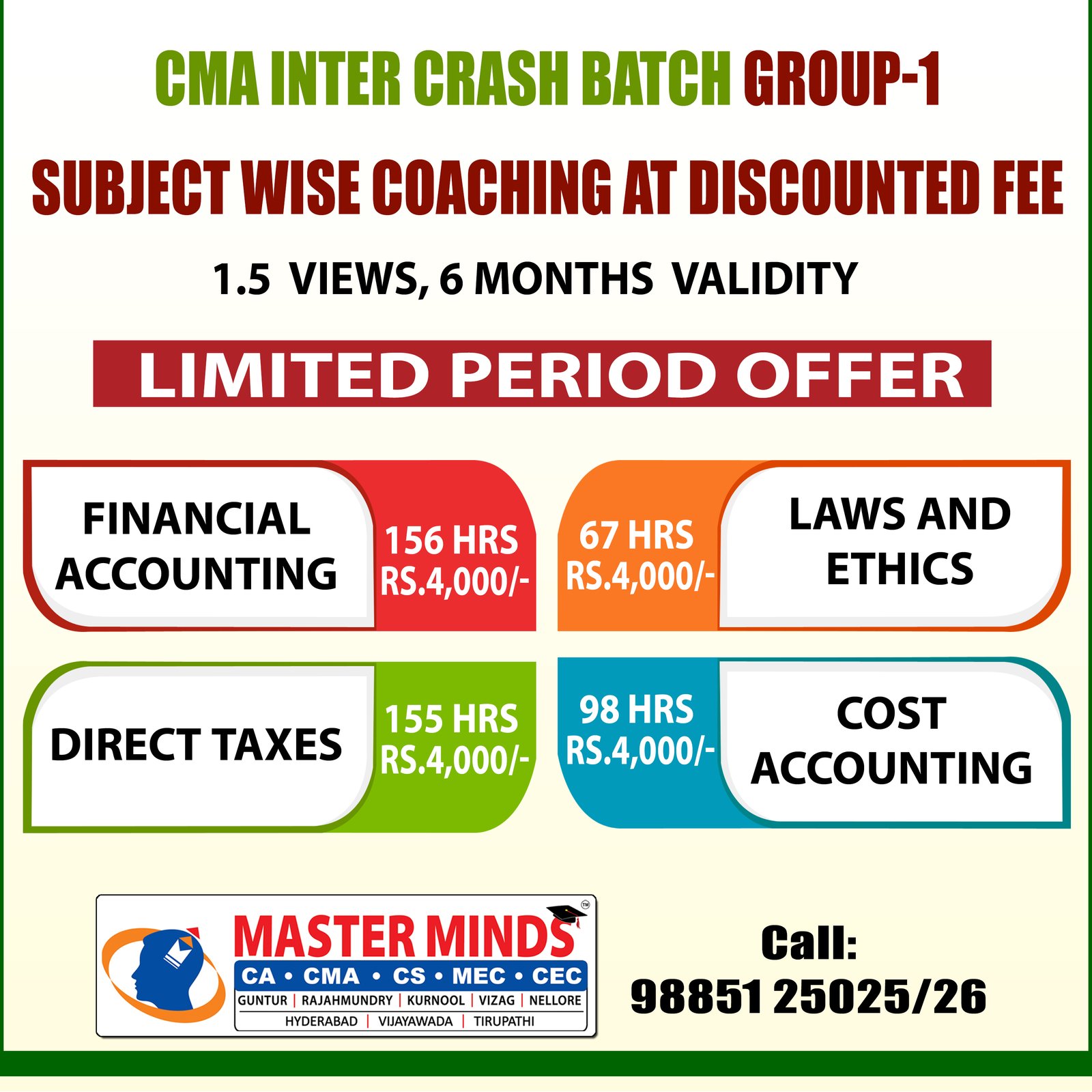 HUGE DISCOUNT ON CMA FINAL SUBJECT WISE COACHING |