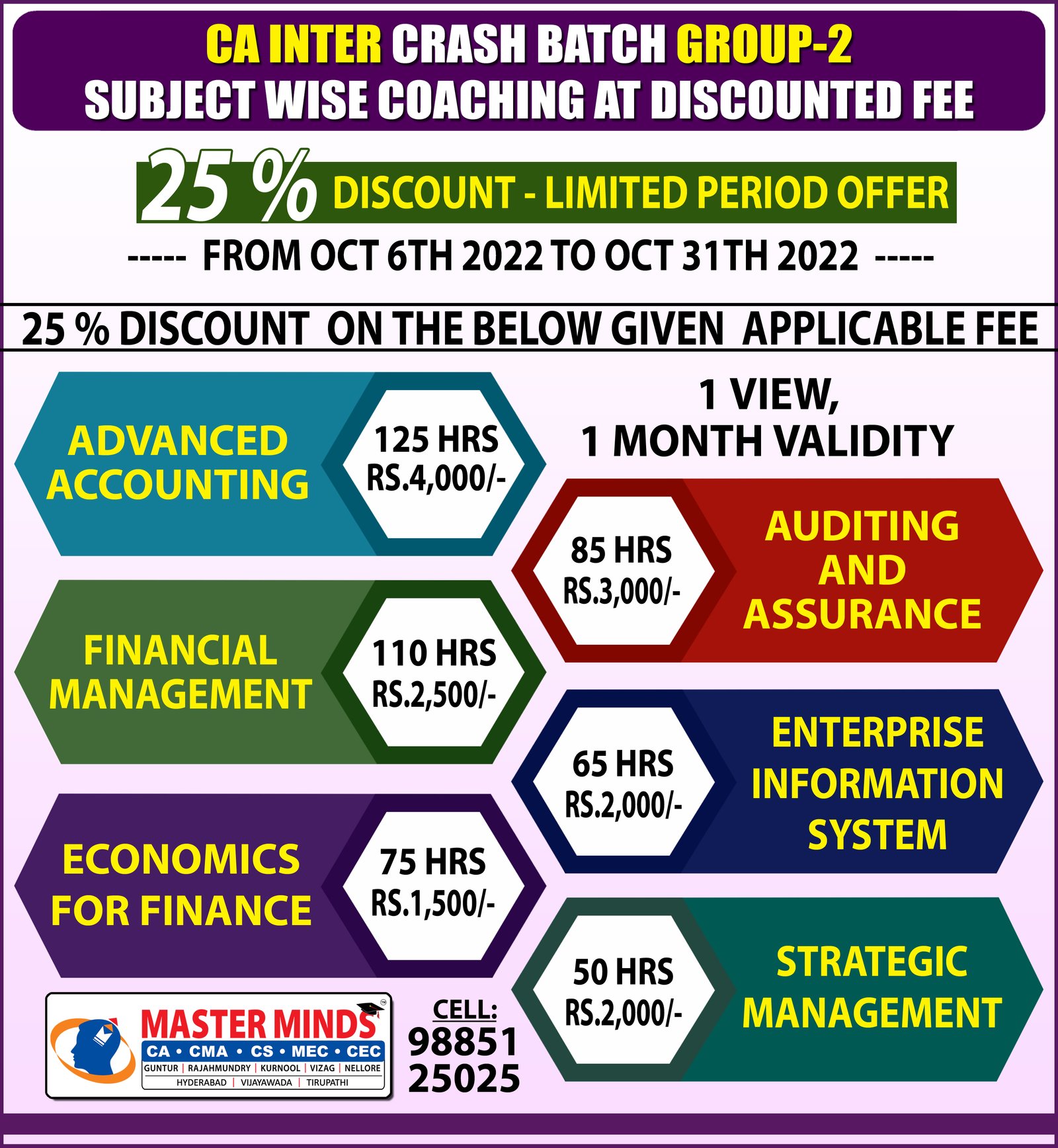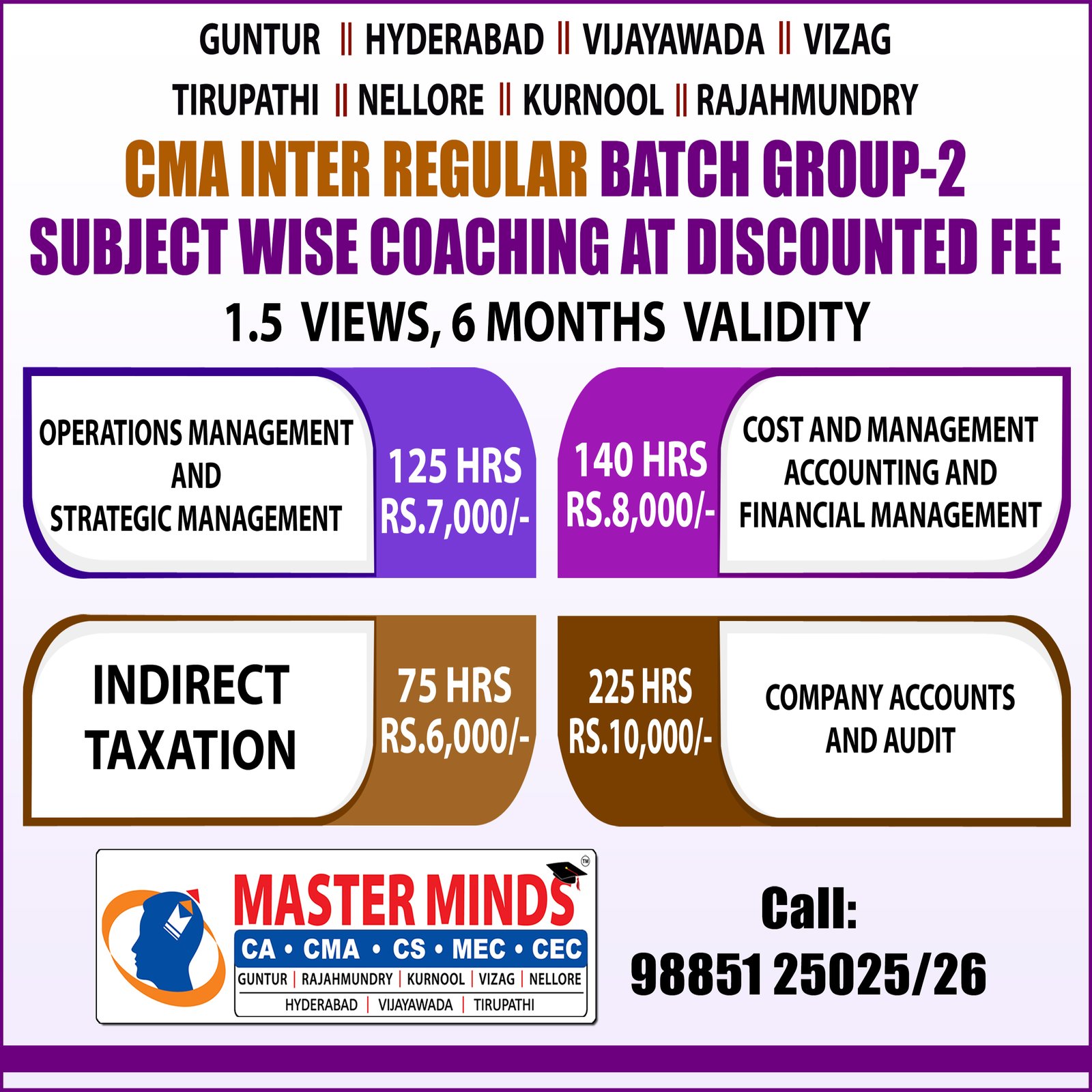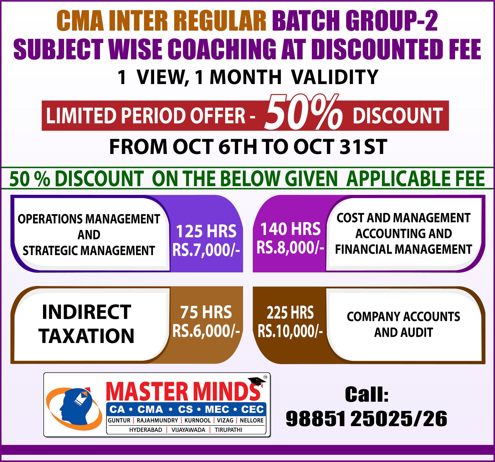 HUGE DISCOUNT ON CMA INTER SUBJECT WISE COACHING (G2) |