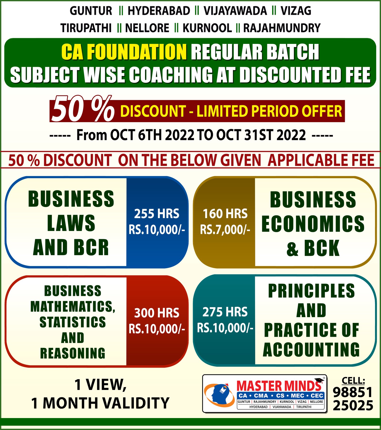 HUGE DISCOUNT ON CA FOUNDATION REGULAR BATCH SUBJECT WISE COACHING |