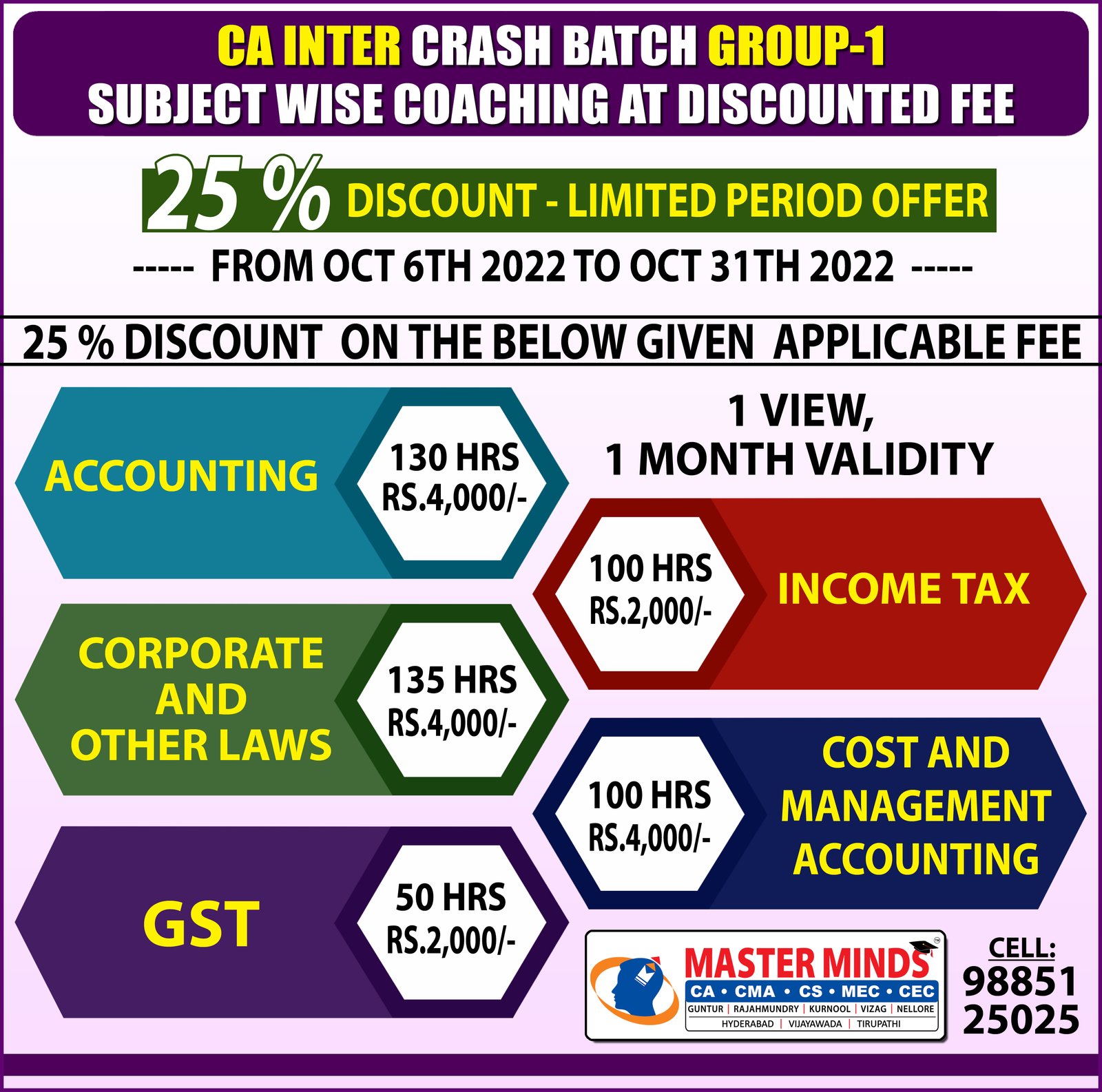 HUGE DISCOUNT ON CMA INTER SUBJECT WISE COACHING (G1) |