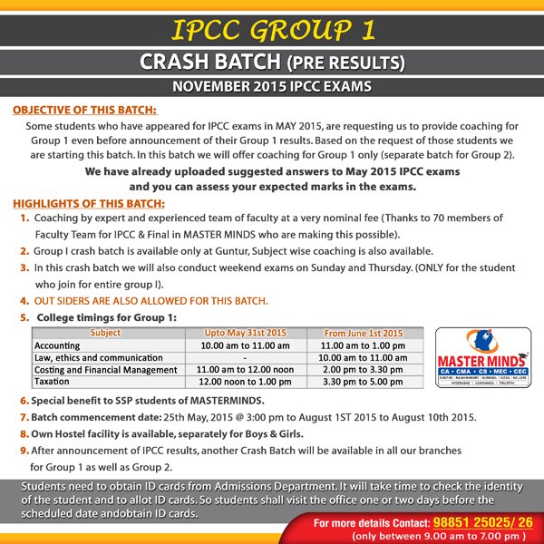 IPCC Crash Batch FOR NOV 2015 EXAMS DETAILS |