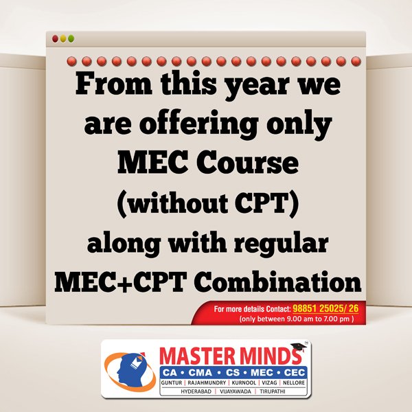 CPT, Inter - MEC Hostel Seat Reservatins are going on. For Early Admission Discount Contact ....... 98851 25025 / 26  |