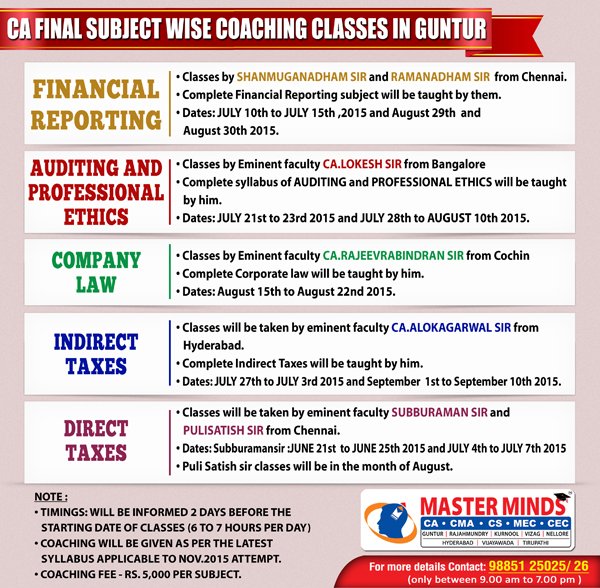 CA Final subject wise coaching classes in Guntur 01 |