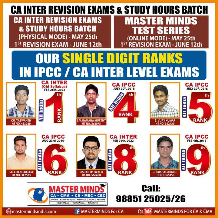 MASTER MINDS TEST SERIES (ONLINE REVISOIN EXAMS) FOR MAY 2023 CA INTER AND CA FINAL EXAMS |