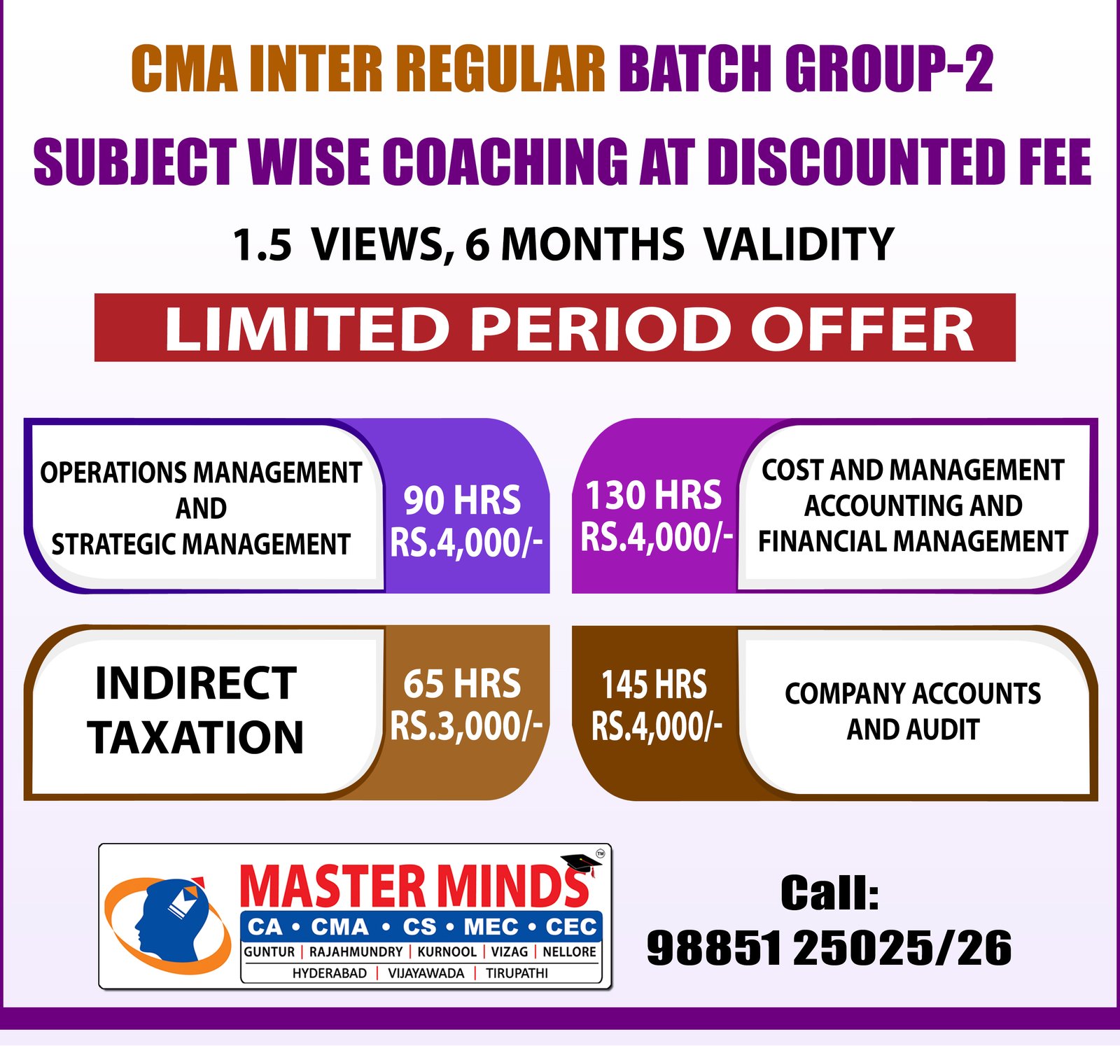 HUGE DISCOUNT ON CMA INTER SUBJECT WISE COACHING (G2) |