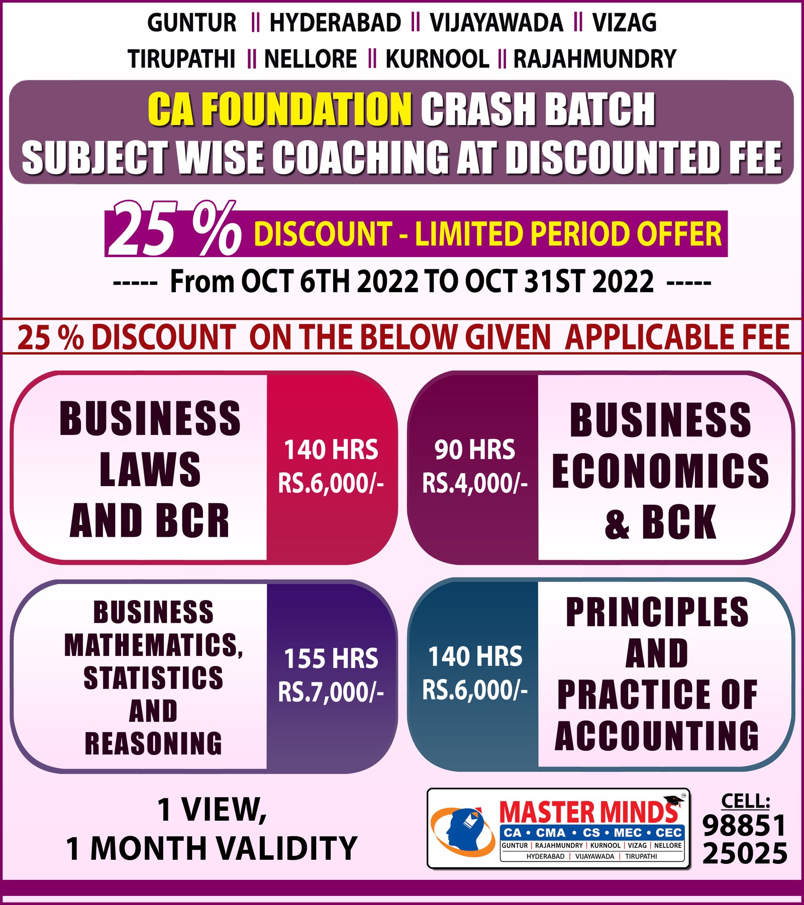 HUGE DISCOUNT ON CA FOUNDATION REGULAR BATCH SUBJECT WISE COACHING |