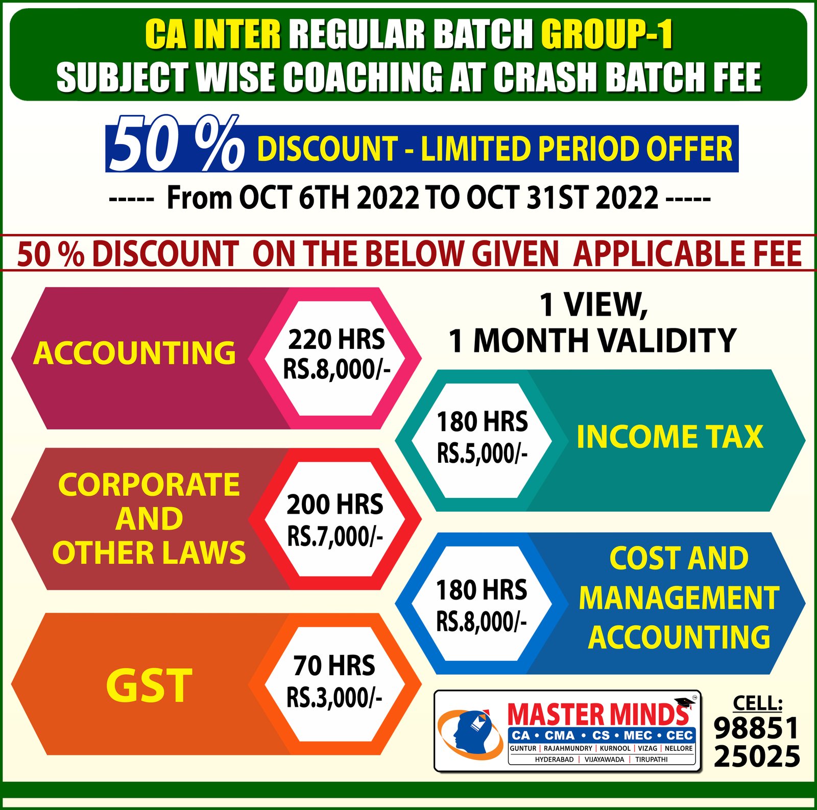 HUGE DISCOUNT ON CMA INTER SUBJECT WISE COACHING (G1) |