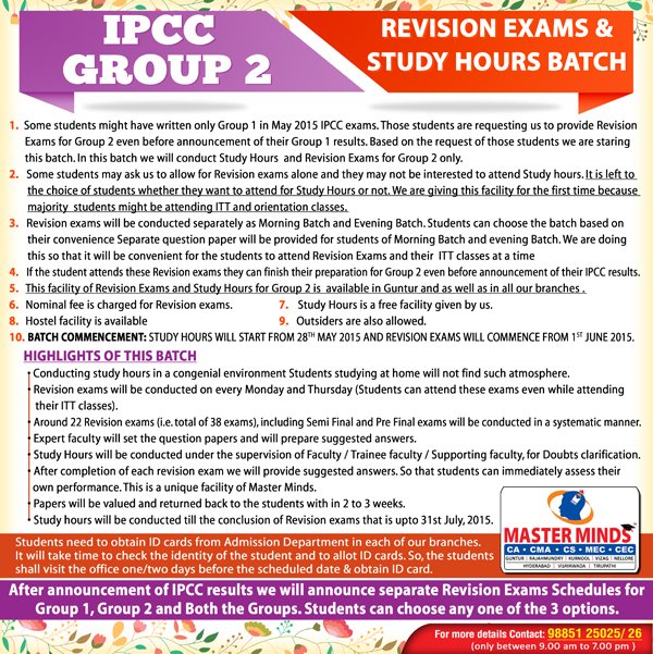 IPCC Study hours and Revision exams batch FOR NOV 2016 ATTEMPT 2 |