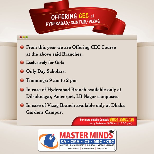 Offering CEC at Hyderabad, Guntur, Vizag |