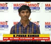 K.Pavan Kumar_IPCC-24th Ranker MASTER MINDS CA ACADEMY STUDENT |