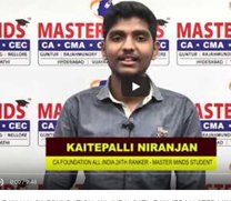 KAITEPALLI NIRANJAN CA FOUNDATION ALL INDIA 24TH RANKER MASTER MINDS FOR CA |