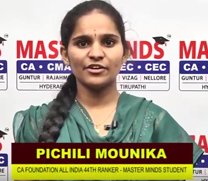 PICHILI MOUNIKA CA FOUNDATION ALL INDIA 44TH RANKER MASTER MINDS FOR CA |
