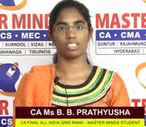 MS CA K PRATHYUSHA CA FINAL ALL INIDA 32ND RANKER MASTER MINDS FOR CA |