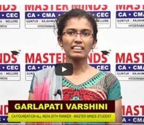 GARLAPATI VARSHINI CA FOUNDATION ALL INDIA 20TH RANKER MASTER MINDS FOR CA |