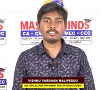 VISHNU VARDHAN MALIPEDDU CMA FINAL ALL INDAI 44TH RANKER MASTER MINDS FOR CA |